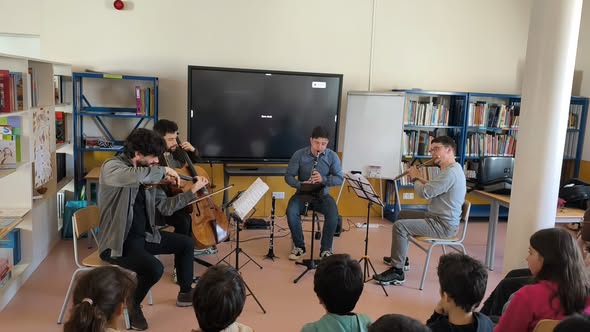No passado dia 16 de março, no âmbito do Plano Anual de Atividades, as EB de Eixo e de Azurva receberam a inspiradora atividade “Audição Comentada”, dinamizada pelo grupo Ars ad Hoc, da associação Arte no Tempo.