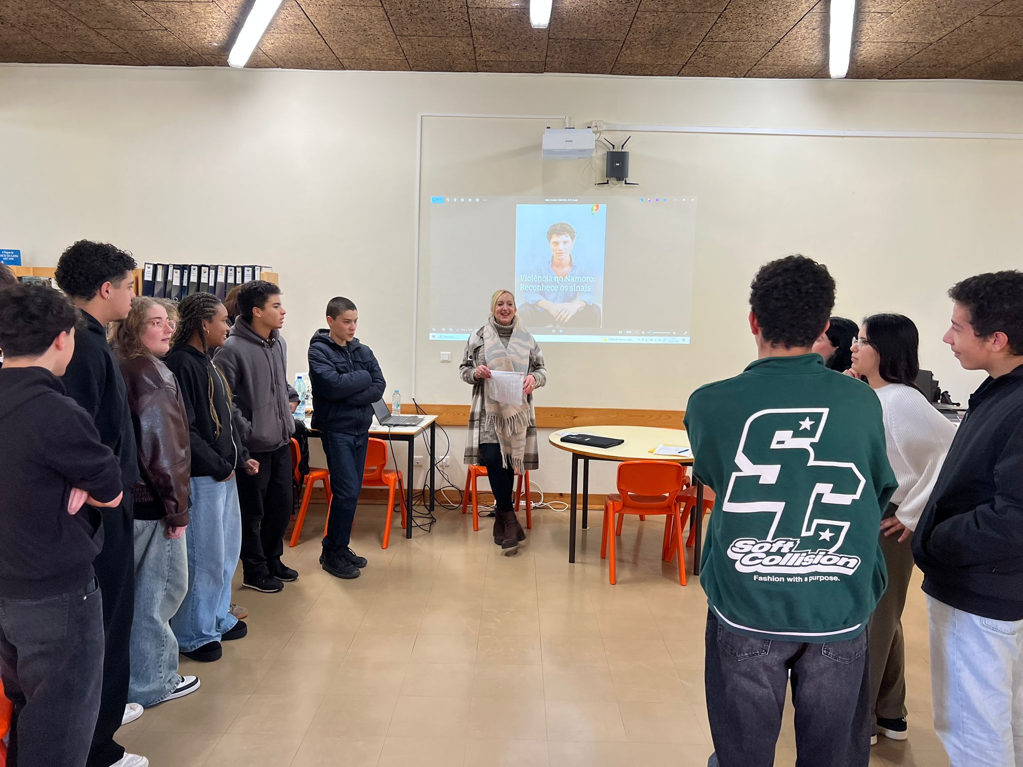 No âmbito do trabalho desenvolvido na EIA (Equipa de Integração do Aluno), nomeadamente na valência do Serviço Social, foram dinamizadas sessões de sensibilização dirigidas às turmas do 9.º ano, subordinadas ao tema “Violência no Namoro” — uma temática particularmente relevante tendo em conta a faixa etária dos alunos.