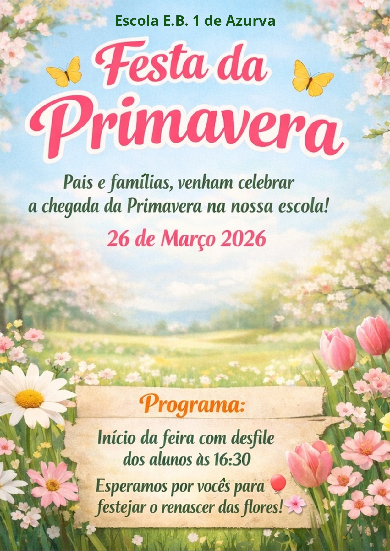No próximo dia 26 de março, a EB de Azurva abre as portas à comunidade para celebrar a Feira da Primavera, a partir das 17h00.
