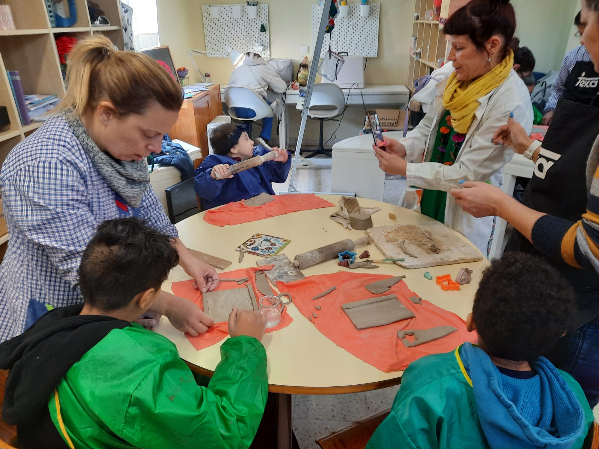 Após tomarem conhecimento da proveniência e da composição do material, puseram mãos à obra na modelagem de uma peça. Aprenderam o processo de secagem e cozedura, a alta temperatura, na mufla. No final, cada obra foi pintada pelo respetivo “artesão” e oferecida com grande carinho a alguém muito especial!