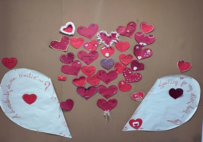 Cada aluno recebeu a metade de um coração e embarcou na jornada emocionante de encontrar a outra metade, que encaixou na sua, revelando as mensagens escritas em inglês e francês.