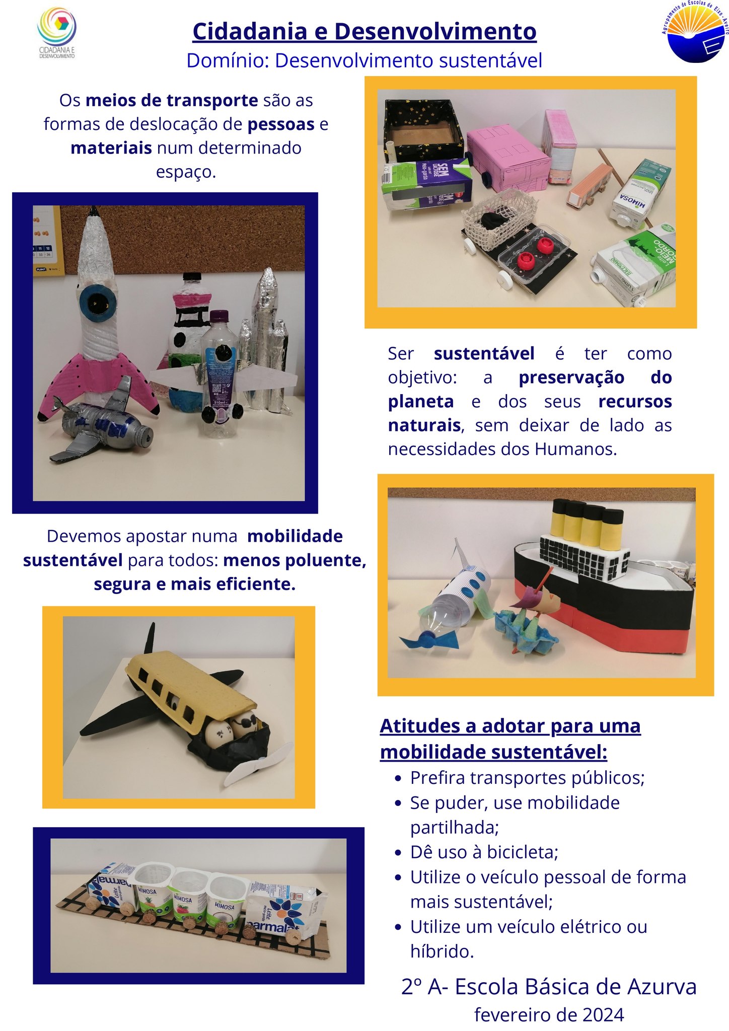 Neste âmbito, a turma do segundo ano da Escola Básica de Azurva, na disciplina de Cidadania e Desenvolvimento, desenvolveu um trabalho com vista a chamar a atenção de todos para os comportamentos e atitudes sustentáveis, no que diz respeito à mobilidade!