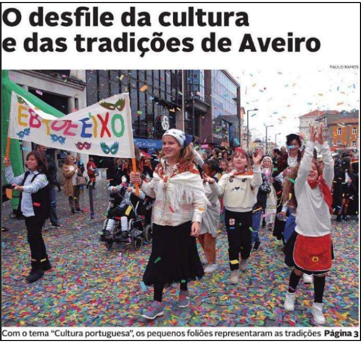 O AEEixo manifesta um forte agradecimento à Câmara Municipal de Aveiro, pela excelente organização do evento, que promoveu a cultura e as tradições da cidade e ao Diário de Aveiro, pelos vídeos e fotos partilhados e pela manchete de hoje, onde tivemos honras de destaque!