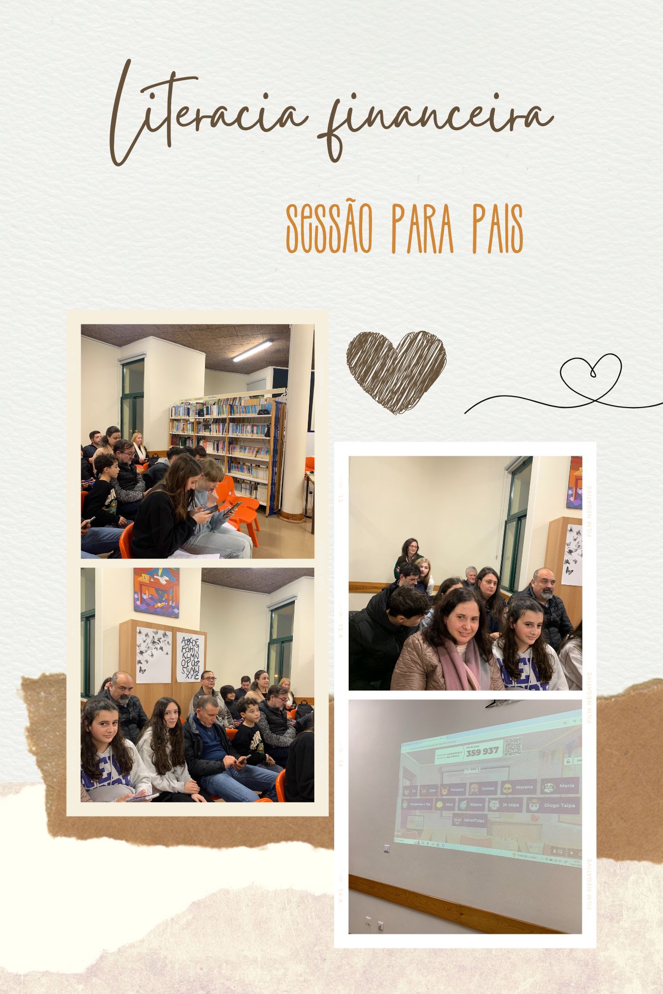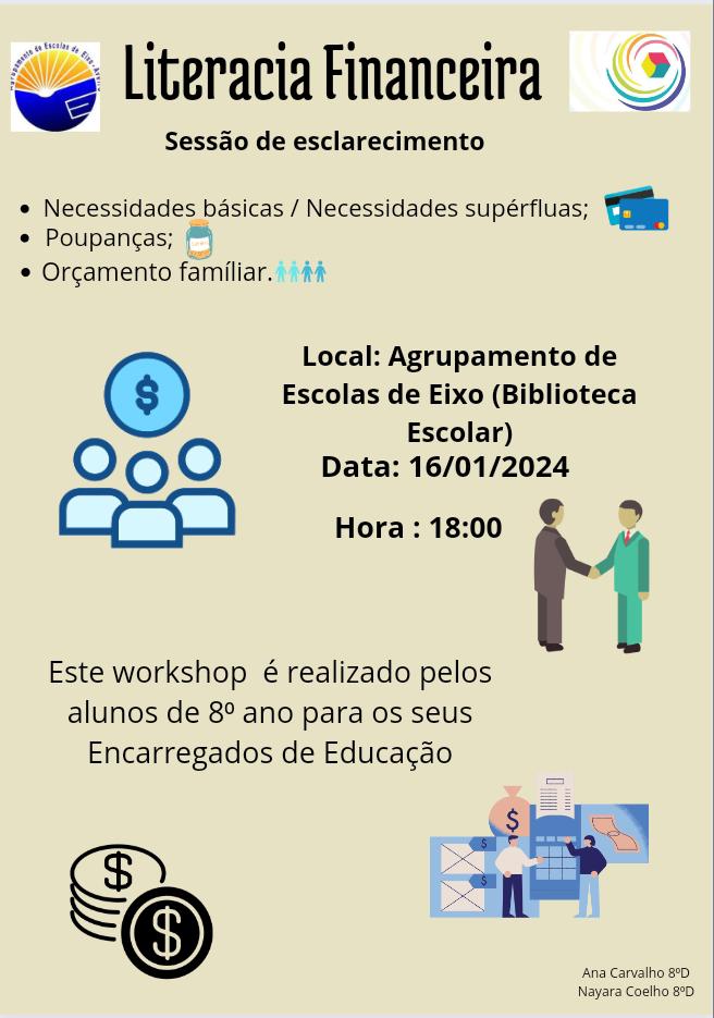 Nesta senda, no final da tarde do passado dia 16, os alunos do oitavo ano dinamizaram uma interessante sessão de literacia financeira, apresentando trabalhos de forma dinâmica e envolvente, na BE do AEEixo, para uma plateia muito especial: familiares e encarregados de educação!