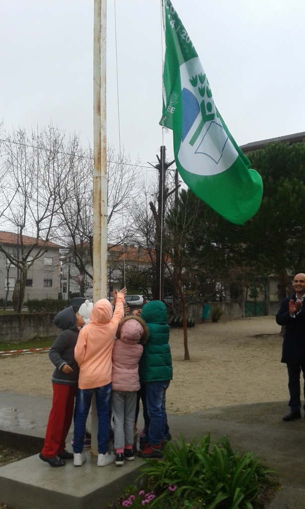 No passado dia 4 de março, ficamos muito felizes porque, finalmente, ocorreu a cerimónia do Hastear da Bandeira Verde Eco-Escolas 2015, na nossa escola, em Azurva que contou com a presença de alguns encarregados de educação, da Vereadora do Pelouro do Ambiente e Qualidade, doutora Raquel Madureira e do Diretor do nosso Agrupamento, Professor Tiago, que ajudaram os delegados e subdelegados de turma a prender e a elevar a bandeira até ao topo do mastro...